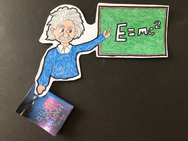 Marty liked to speculate about gravity and space-time in her journal and draw her own renditions of Einstein. (above from the novel Marty’s Dark Matter)